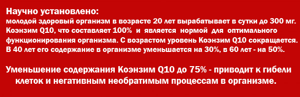 Чтобы этого не допустить - крайне важно постоянно поддерживать необходимо-высокий уровень содержания Коэнзим Q10 в организме, дополнительно, ежедневно употребляя его в качестве пищевой добавки в своем рационе питания.