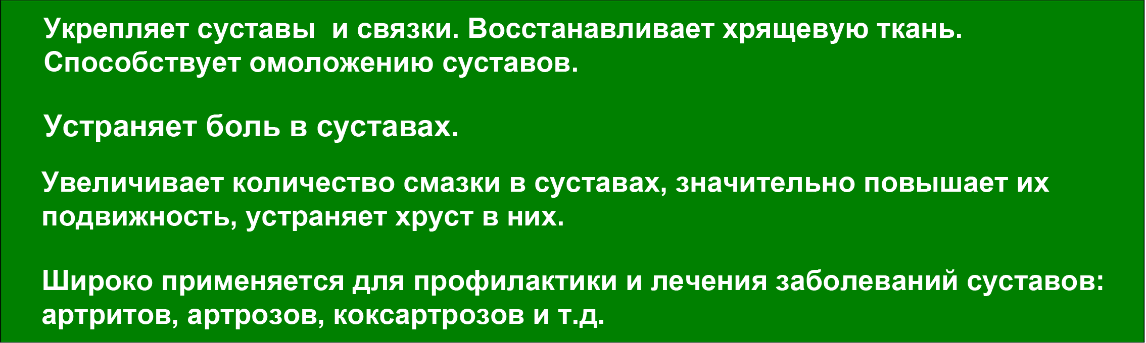 Укрепляет суставы и связки. Восстанавливает хрящевую ткань.