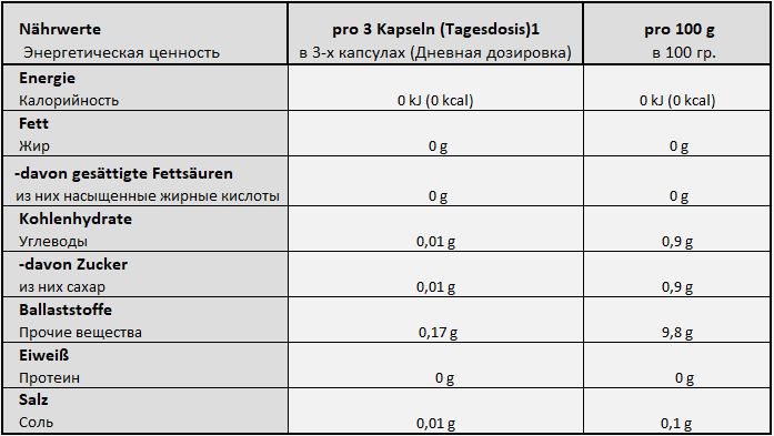 Состав L-Carnitin + Eleuthero 5:1 BioVitum и его пищевая ценность: